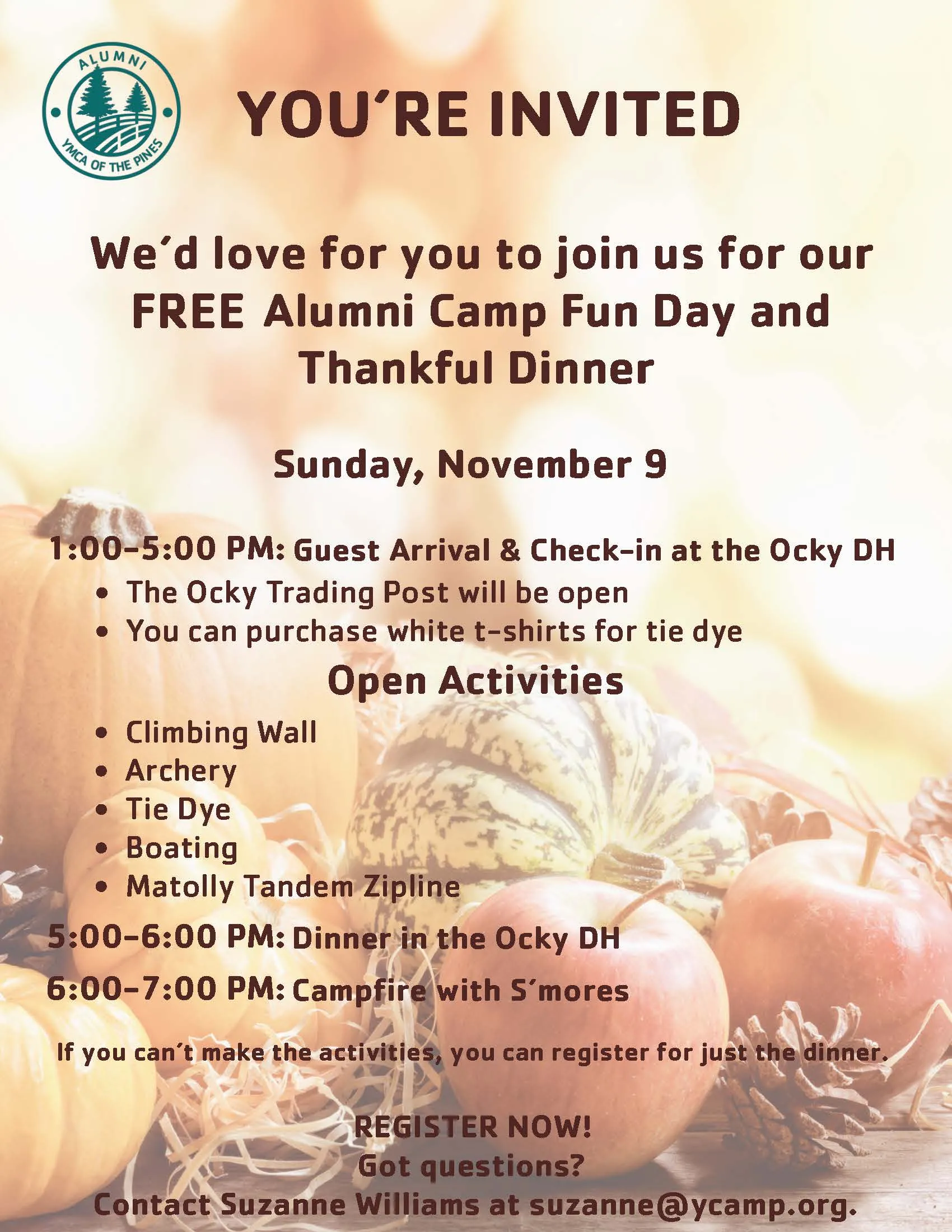 Come for the afternoon to participate in camp activities and wander around camp at your leisure. We’ll close the day with dinner together and a bonfire at the bowl.